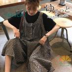 キャミオールインワン キャミサロペット レディース オーバーオール チェック柄 体形カバー ゆったり マタニティ 大きいサイズ 薄手 春夏 カジュアル