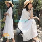 ワンピース レディース 40代マキシワンピース 春夏 五分袖ワンピース2点セット vネック 白レーススカート オシャレ マタニティーワンピース 妊娠服