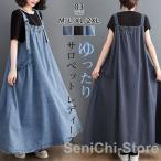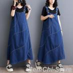 デニムサロペット サロペット オーバーオール ジャンパースカート オールインワン マキシ丈 ゆったり 体型カバー 大きいサイズ バックリボン マタニティ カジュ