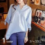 スキッパーシャツ レディース ブラウス 半袖 五分袖 ストライプ 袖リボン 春 夏 チュニック シャツ Vネック 大きいサイズ 可愛い