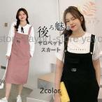 サロペットスカート デニム ワンピース ロング丈 レディース ジャンパースカート オールインワン 春秋 着痩せ シンプル カジュアル 無地