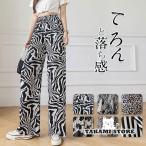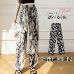 ロングパンツ レディース ワイドパンツ ハイウエスト 柄 カラーパンツ ガウチョ サマー ゆったり UVカット 楽ちん 高身長 旅行 普段着