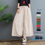 ワイドパンツ 春 夏 秋 レディース ボトムス パンツ スカーチョ ワイドパンツ 春 夏 秋 ガウチョ スカンツ ゆったり 綿麻 体型カバー ハイウエスト ポケット付き