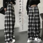 ワイドパンツ 春 夏 秋 レディース ボトムス チェック柄 体型カバー イージー 春夏 薄手 ロング 部屋着 ガウチョ ルームウェア ズボン 通学 カジュアル