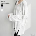 カットソー レディース 長袖 秋 コーデ エンボス加工 ゆったり ロング 大きめ トップス チュニック プルオーバー ワイド 無地 サイドスリット Tシャツ 春