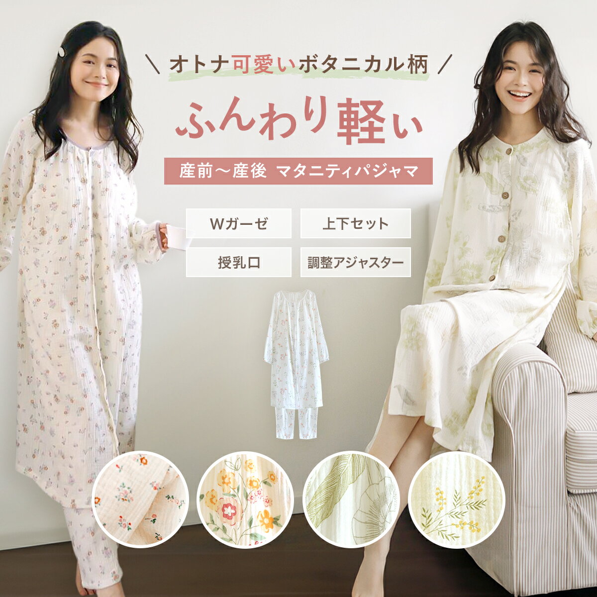 \1日限定ポイント5倍/【あったか素材新発売】マタニティパジャマ 授乳 パジャマ マタニティ 綿100 ダブルガーゼ 妊婦 暖かい サイドスリット 前開き セパレート 上下 春 夏 秋 冬 長袖 産前 産後 ワンピース ズボン ネグリジェ 出産準備 入院準備 ボタニカル柄 花柄