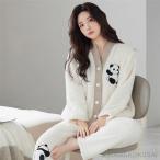 マタニティ パジャマ 冬 モコモコ パンダ vネック かわいい 長袖 マタニティ ルームウェア 授乳口 付き ウエスト調節 パジャマ 上下セット マタニティ パジャマ