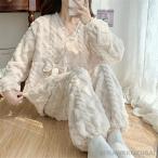 マタニティ パジャマ 冬 モコモコ 花形 vネック 柔らかい 長袖 マタニティ ルームウェア 授乳口 付き ウエスト調節 パジャマ 上下セット マタニティ パジャマ ギ