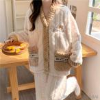 マタニティ パジャマ 冬 モコモコ クマ 柔らかい おしゃれ 長袖 マタニティ ルームウェア 授乳口 付き ウエスト調節 パジャマ 上下セット マタニティ パジャマ