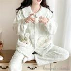 マタニティ パジャマ 冬 モコモコ うさぎ かわいい 無地 長袖 マタニティ ルームウェア 授乳口 付き ウエスト調節 パジャマ 上下セット マタニティ パジャマ ギ
