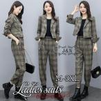 セットアップ レディース 春 秋服 パンツスーツ ジャケット チャック柄 3点セット カジュアル 服 母 アメカジ おしゃれ ママオフィス 通勤 OL