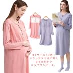 カップ付き ルームウェア マタニティワンピース 長袖 ロング ワンピース ブラつき インナー パジャマ レディース ひざ下 シンプル 大きいサイズ マ