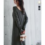 日替わりセール ワンピース ロング 長袖 カットソー リブ 前後2way ボートネック Uネック レディース ポケット付き 細見え E3569送料無料