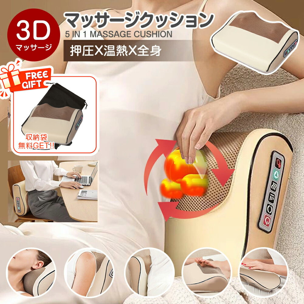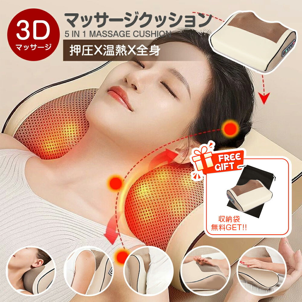 マッサージクッション マッサージ機 マッサージ枕 マッサージ器 USB充電 マッサージャー 温熱ヒーター 首 肩 腰 背中 太もも プレゼント 家庭用 職場用