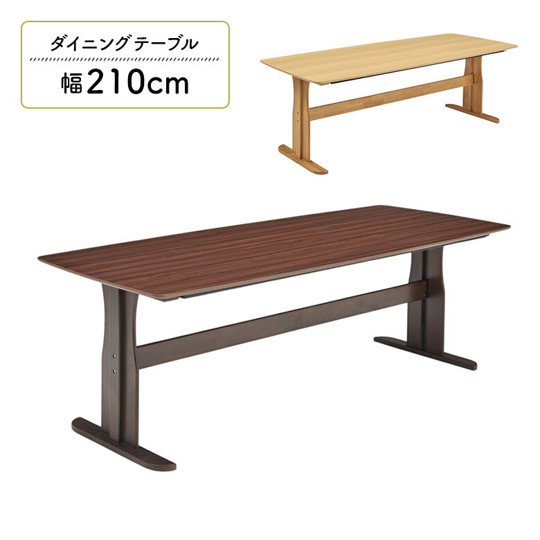【全商品に使える10%offクーポンあり!!】 ダイニングテーブル 単品 210cm 天然木 木製 突板 ウォールナット オーク 8人掛け 7人掛け 6人掛け 2本脚 T字脚 シンプル おしゃれ モダン テーブルのみ 食卓テーブル ナチュラル ブラウン 長方形 大人数 角丸