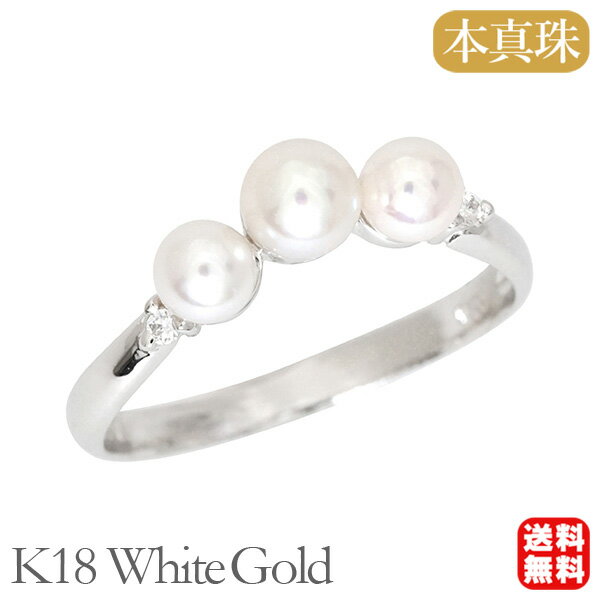 【10%OFF 12/3 20時より】パール リング カジュアル 普段使い 18金 k18 18k ホワイトゴールド 真珠 ベビーパール スリーストーン 3コ付 真珠 アコヤ あこや 4-4.5mm 4.5-5mm ダイヤモンド 送料無料 レディース プレゼント ギフト ジュエリー ブラックフライデー