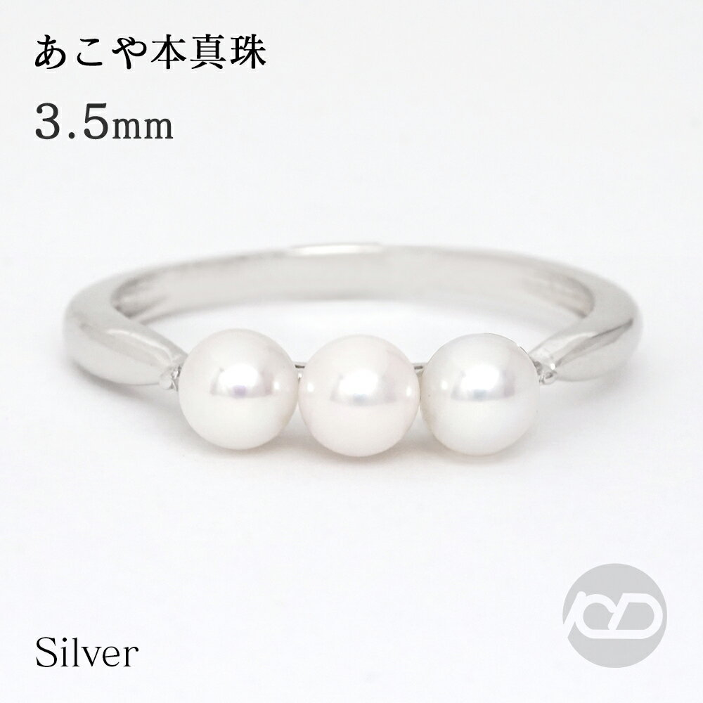 【10%OFF 12/3 20時より】パール リング カジュアル 普段使い 真珠 ベビーパール スリーストーン 3コ付 真珠 アコヤ あこや 3.5-4mm ダイヤモンド シルバー 送料無料 レディース プレゼント ギフト ジュエリー ブラックフライデー