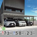 カーポート 3台用 アルミカーポート 駐車場 車庫 間口7.3m×奥行5.8m 標準柱 シンプルフラット 駐車場 屋根 ポリカ屋根 7358
