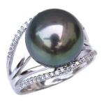 パール リング 真珠リング 指輪 ブラックパール 黒真珠 ダイヤモンド 0.22ct ホワイトゴールド 18金 k18 タヒチ黒蝶真珠 12mm プレゼント ギフト 自分買い pu