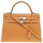 エルメス ケリー32 外縫い ヴォーシャモニー ナチュラル マットシルバー金具 □D刻印 ハンドバッグ 茶 0266 HERMES