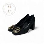 ルイヴィトン LOUIS VUITTON マドレーヌライン パンプス 靴 シューズ サテン ブラック ゴールド ビジュー LVサークルロゴ