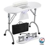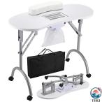 ポータブル 折りたたみ式 マニキュアテーブル ネイルデスク ワークステーション 集じん器/リストパッド/制御可能なホイール/キャリーケース付き スパ/美容室/技