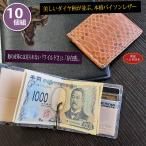札ばさみ マネークリップ メンズ レディース 財布 折り財布 サイフ 薄型 クロコダイル革 鰐革 ワニ革 無双 カード収納 グレージング ピンク