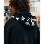 【STUD MUFFIN(スタッドマフィン)】TC裏毛起毛 ラベル&スマイル発泡プリントマルチパッチワーク プルパーカー(524-02830)