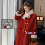 裏起毛 ステンカラーコート レディース ロングコート マフラー付き コクーンコート