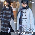 ダッフルコート 2WAY マフラー付き ウール混 冬服 レディース リボン ジャケット ミディアムコート ミモレ丈 アウター 小柄 可愛い 学生 通学 通勤 着痩せ