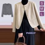 ショートコート ジャケット レディース ノンカラージャケット ミドル丈コート アウター ツイードジャケット ママ 母 結婚式 入学式 卒業式