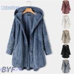 ファーコート レディース ファージャケット コート アウター フード付き 裏起毛 もこもこ カジュアル 秋 冬 シンプル 暖かい 防寒 コーデュロイコート 30代 40代