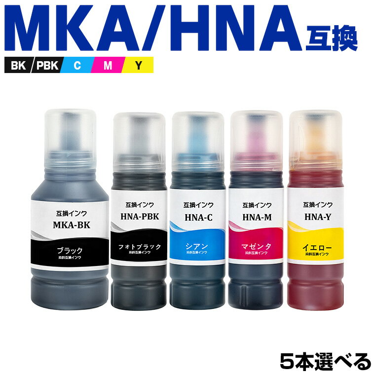 ★月末10%OFFクーポン★【顔料ブラック】 MKA HNA マラカス ハーモニカ エプソン EPSON 5色セット互換インクボトル 内容:MKA-BK HNA-PB HNA-C HNA-M HNA-Y 対応機種:EW-M770T / EW-M770TW / EW-M970A3T