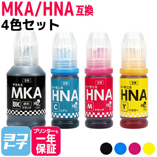 ★月末10%OFFクーポン★【顔料ブラック】MKA/HNA マラカス ハーモニカ エプソン EPSON 4色セット互換インクボトル 内容:MKA-BK HNA-C HNA-M HNA-Y 対応機種:EW-M770T / EW-M770TW / EW-M970A3T