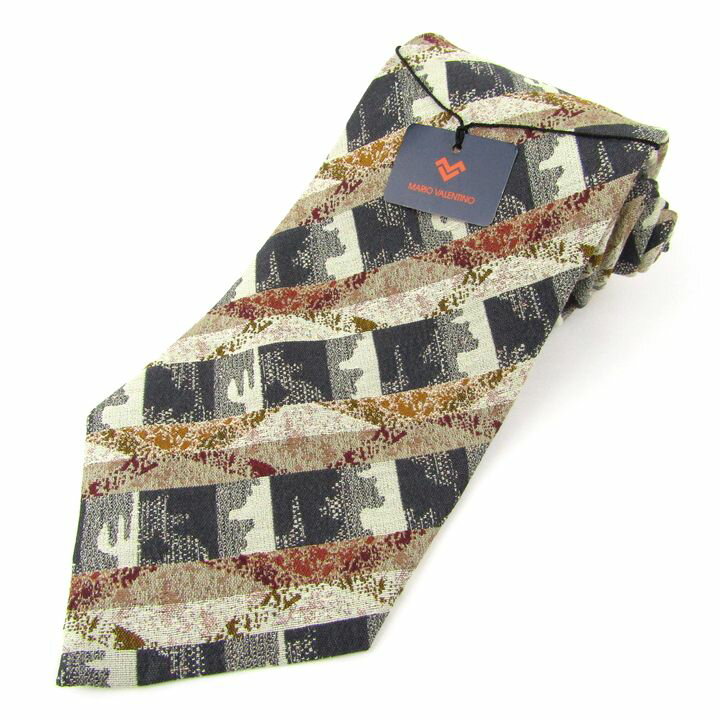 マリオヴァレンティノ ブランド ネクタイ ボーダー柄 シルク イタリア製 未使用タグ付 PO メンズ カーキ MARIO VALENTINO 【中古】