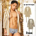 G-Station/ジーステーション メンズ浴衣型ルームウェア ミニ丈 バスローブ ストライプ ワッフル生地 通気性 軽量 七分袖 リラックスフィット