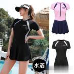 ワンピース水着 フィットネス レディース 半袖 体型カバー 水陸両用 日焼け防止 UVカット サーフィン 海 ビーチ 運動 水泳 マリンスポーツ 女子スイムウェア
