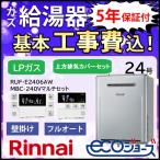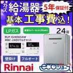 ガス給湯器+側方排気カバー+交換工事費セット リンナイ エコジョーズ 24号 フルオート 壁掛 RUF-E2406AW+MBC-240Vマルチリモコンセット+WOP-3305 プロパンガス