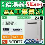 ガス給湯器+配管カバー60cm+交換工事費セット ノーリツエコジョーズ 24号 フルオート 壁掛 GT-C2472AW BL+RC-J101Eマルチセット+H67-K600-S プロパンガス5年保証