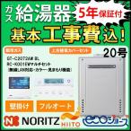 ガス給湯器+上方排気カバー+交換工事費セット ノーリツ エコジョーズ 20号 フルオート 屋外壁掛 GT-C2072AW BL+RC-K001EWマルチセット+C130 都市ガス 5年保証