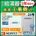 ガス給湯器+上方排気カバー+交換工事費セット ノーリツ エコジョーズ 24号 フルオート w除菌 屋外壁掛 GT-C2472PWAW BL+RC-K001EWマルチセット+C130 都市ガス