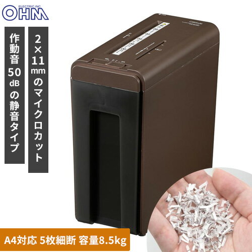オーム電機 SHR-MX492C 静音マイクロマルチシュレッダー マイクロカット A4サイズ ブラウン