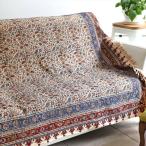 ペルシャ更紗 イラン手染め布 200x135cmサイズ ブルー系 フラワー柄 テーブルクロス ソファカバー