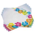 【並行輸入品】Ambesonne ルアウプレースマット 4枚セット 鮮やかでカラフルなボーダーデザイン 咲くハイビスカス ポリネシア 春のアロハ