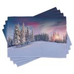【並行輸入品】Ambesonne 冬用プレースマット 4枚セット 雪に覆われた冬の日の出の牧歌的なパノラマ 山々 静けさ 新鮮さ 洗えるファブリ