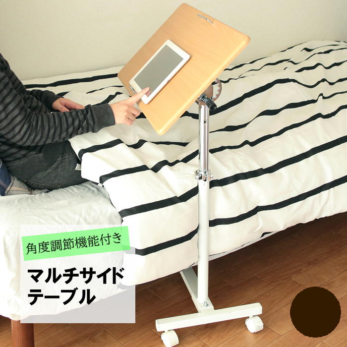 マルチテーブル 64cm〜102cm高さ調整 テーブル 幅68cm キャスター付き ベッドテーブル ベッドサイド 送料無料 サイドテーブル 机 パソコンデスク ソファテーブル