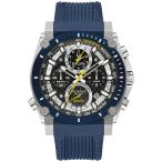 Bulova メンズ アイコン 高精度クォーツ クロノグラフウォッチ カーブミネラルクリスタル, ステンレススチール/ブルーラバーストラップ/イエローアクセント, モ