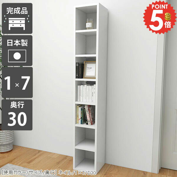 本棚 オープンラック すきま収納 大容量 カラーボックス ハイタイプ オシャレ コミックラック 組立不要 奥行30cm 薄型 スリム 奥行30 可動棚 省スペース 完成品 縦長 リビング収納 漫画 細長 約高さ180cm 収納棚 鏡面 コンパクト オフィス まんが A4 7段 ホワイト 絵本棚 ☆