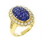 3.3ct天然ブルーサファイアリング 15号 K18YG 1.18ct天然ダイヤモンド ミステリーセッティング イエローゴールド 地金10.5g 中古 送料無料