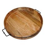 【並行輸入品】A Sight Beyond 24インチ 特大ラウンドオットマントレイ 高耐久マンゴーウッドサービングトレイ 多目的木製ト